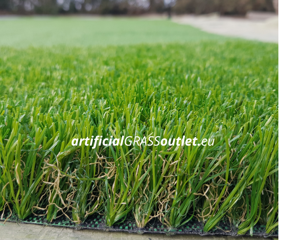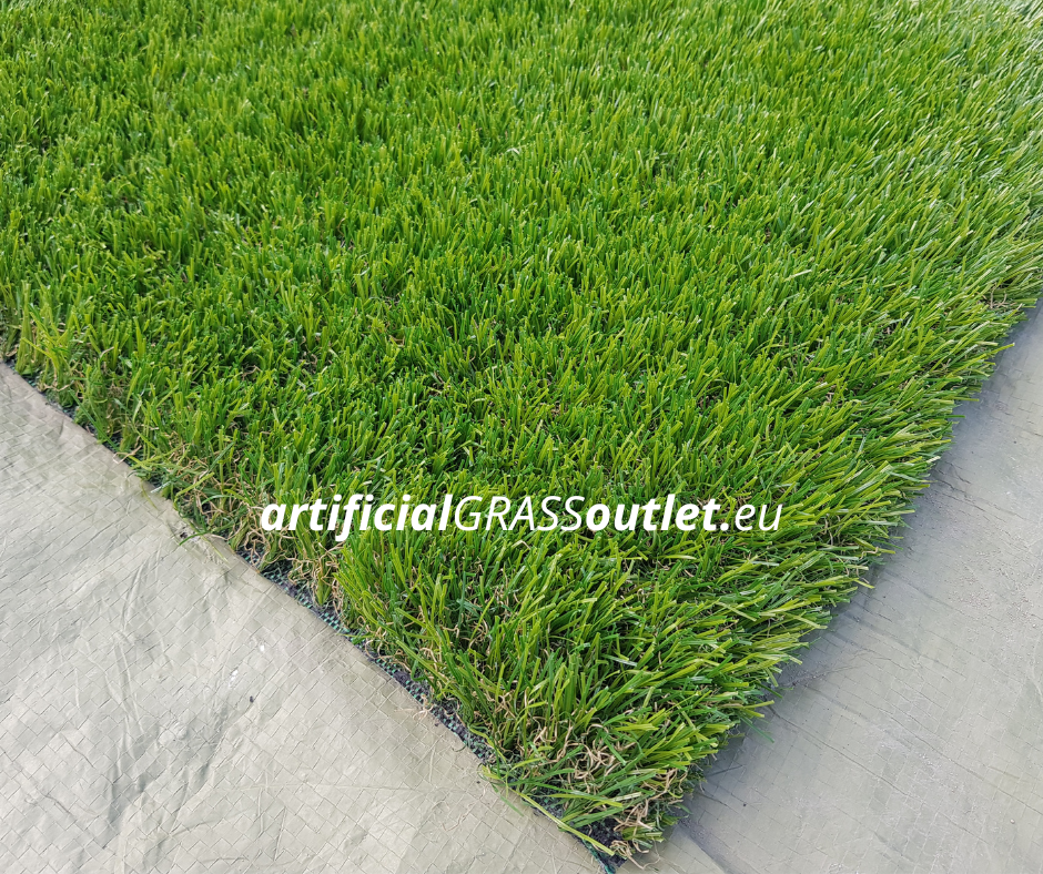It is perfect for those who are looking for a really dense but still soft fake grass. Its pile height and coloration is also optimal for the pet lovers.